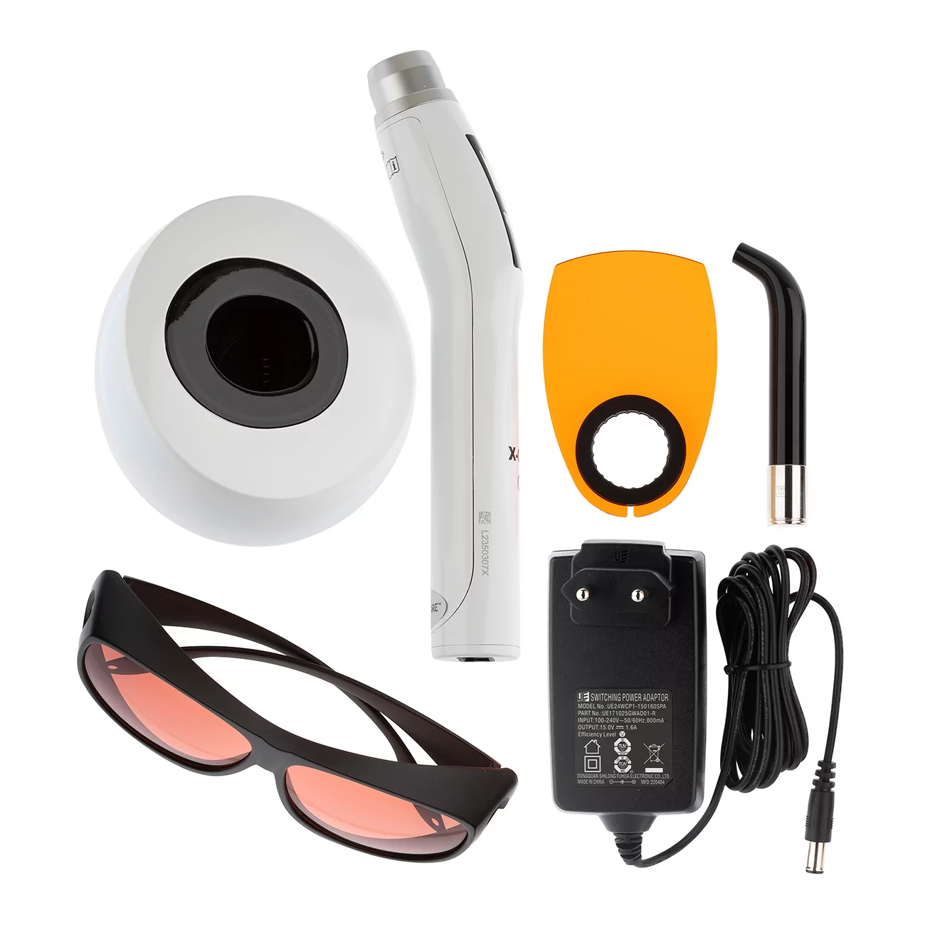 • Check – от 200 до 400 мВт/см2. Предназначен для обнаружения кариеса с использованием ультрафиолетового излучения. Используется вместе с поставляемыми в комплекте очками с оранжевыми линзами для определения поражённой области зуба.