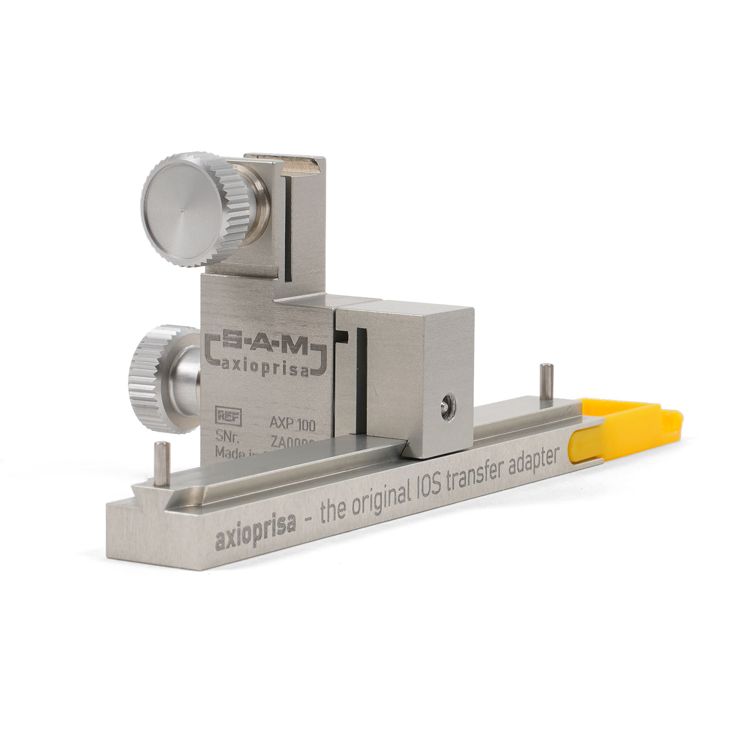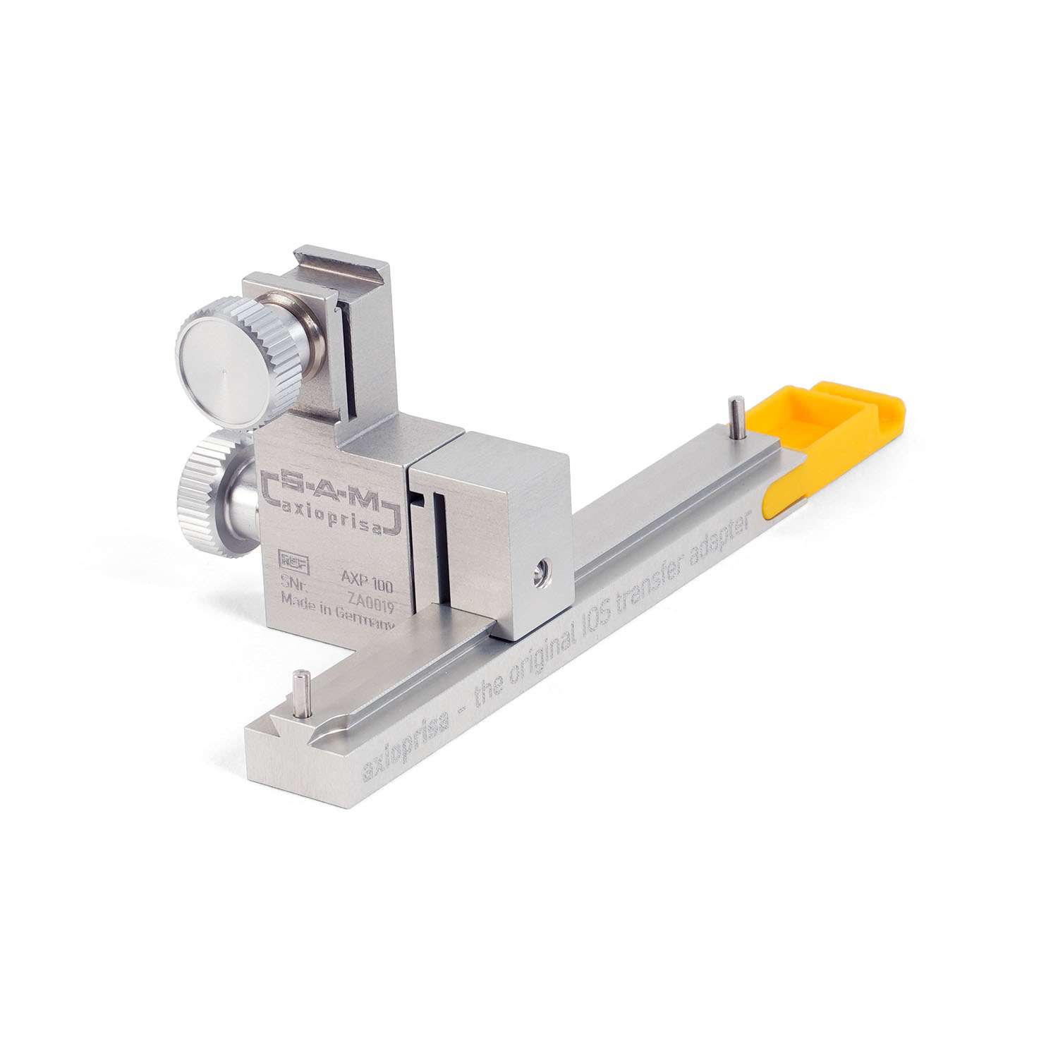 Сборка переноса Axioprisa прикреплена к переносной дуге SAM обычным способом. Благодаря комбинации Axioprisa и переносной дуги можно сканировать верхнюю челюсть в правильном анатомическом положении. Франкфуртская горизонталь — это плоскость, используемая всеми артикуляторами SAM. Используя этот путь, можно переносить положение челюсти с дополнительным сканированием во время внутриротового сканирования. Путь к простым процессам в стоматологической практике позволяет свести источники ошибок к минимуму.