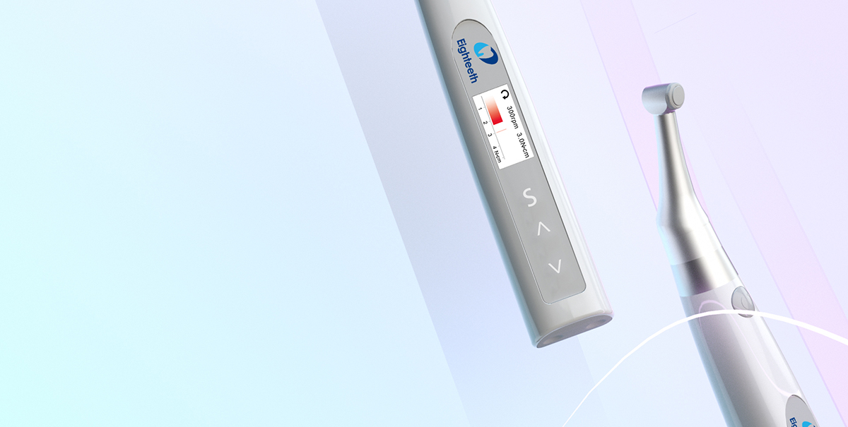 Инновационный мотор компании Eighteeth. Бесщёточный мотор со скоростью до 1000 оборотов подходит любым системам файлов. Удобный дисплей с режимом для левшей, увеличенная батарея, уменьшенная вращающаяся головка.