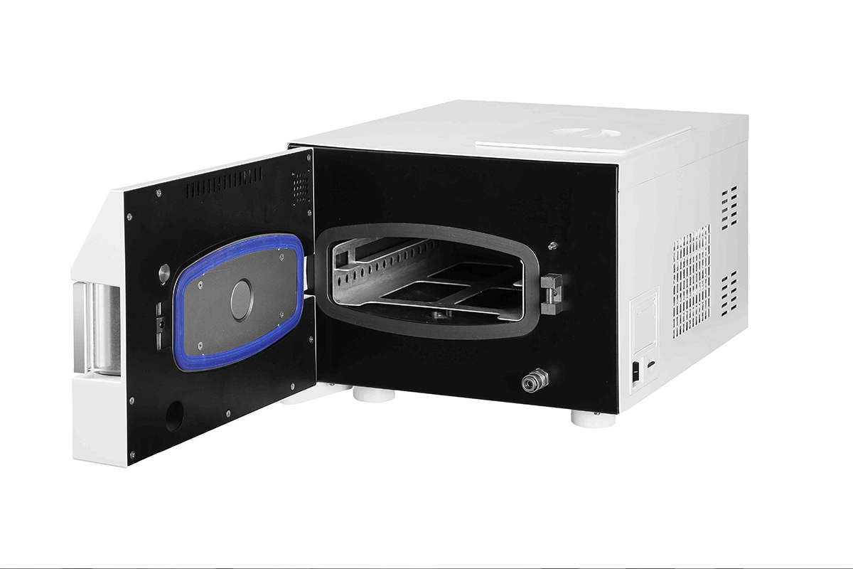 Несмотря на маленький корпус (581, 5 х 365 х 282 мм), вместительная камера автоклава позволяет загрузить 2 лотка с инструментами