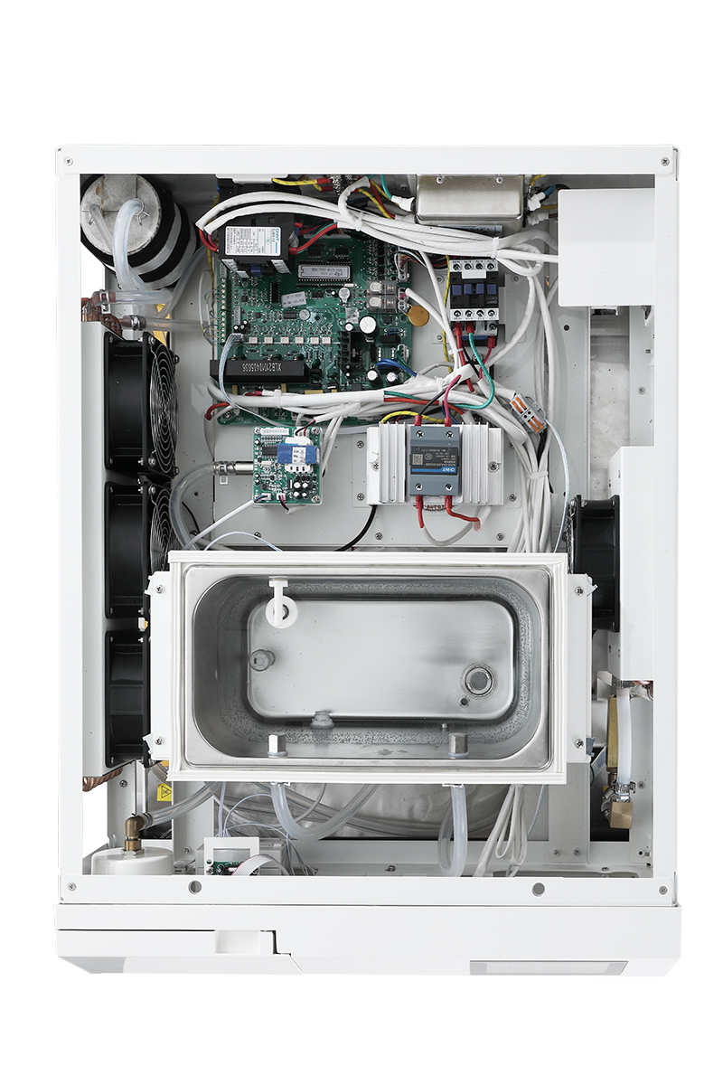 Автоклав подключается к обычной розетке и обладает низким энергопотреблением. При необходимости можно увеличить мощность, подключив к промышленному трёхфазному электричеству.