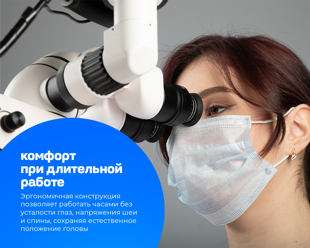 При условии, что сидячее положение врача остаётся неизменным, наклон головы микроскопа влево и вправо обеспечивает сохранение горизонтального положения для просмотра.