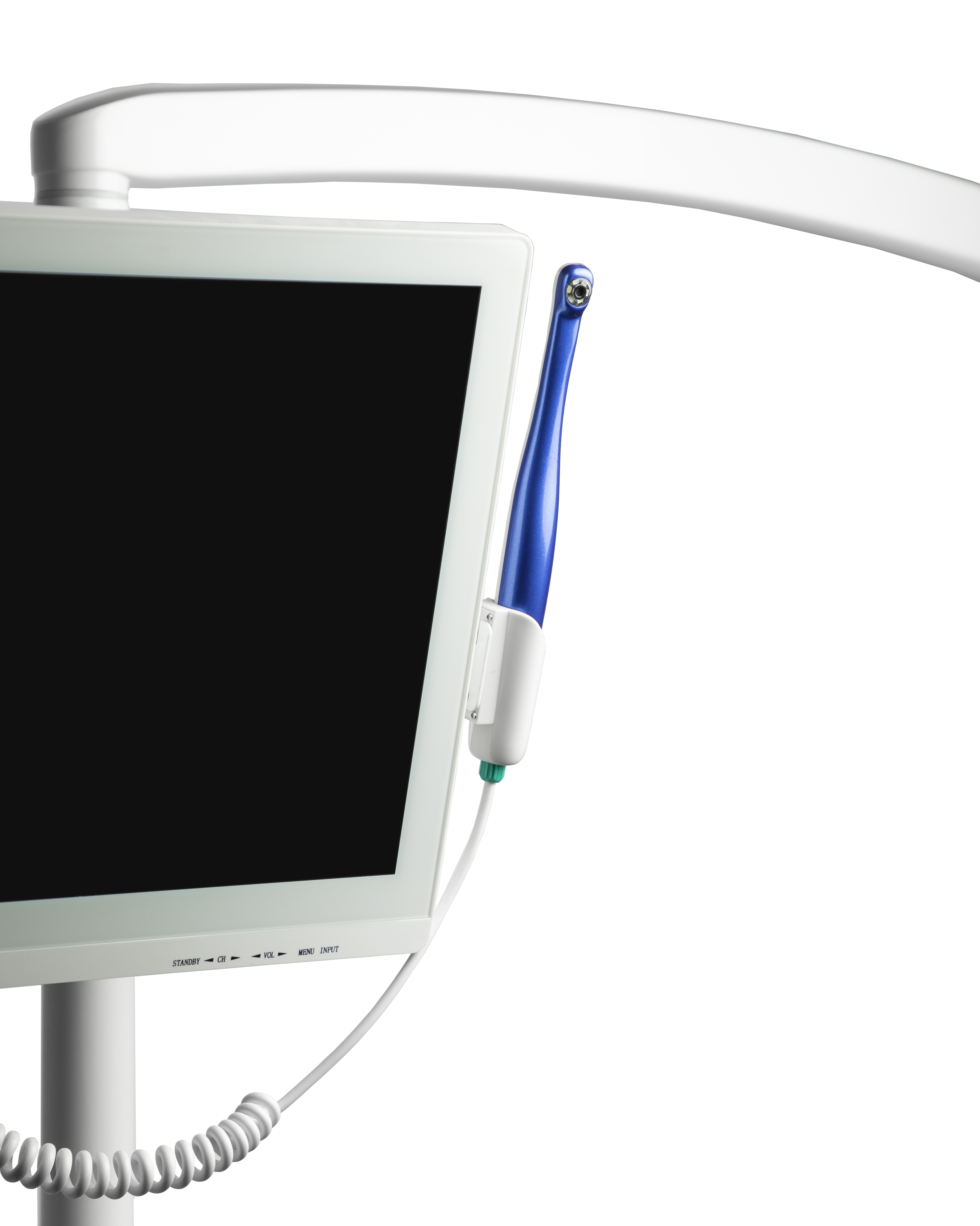 В комплект входит: интраоральная камера, монитор (17 дюймов, 1280×1024 Пикс.), держатель для монитора