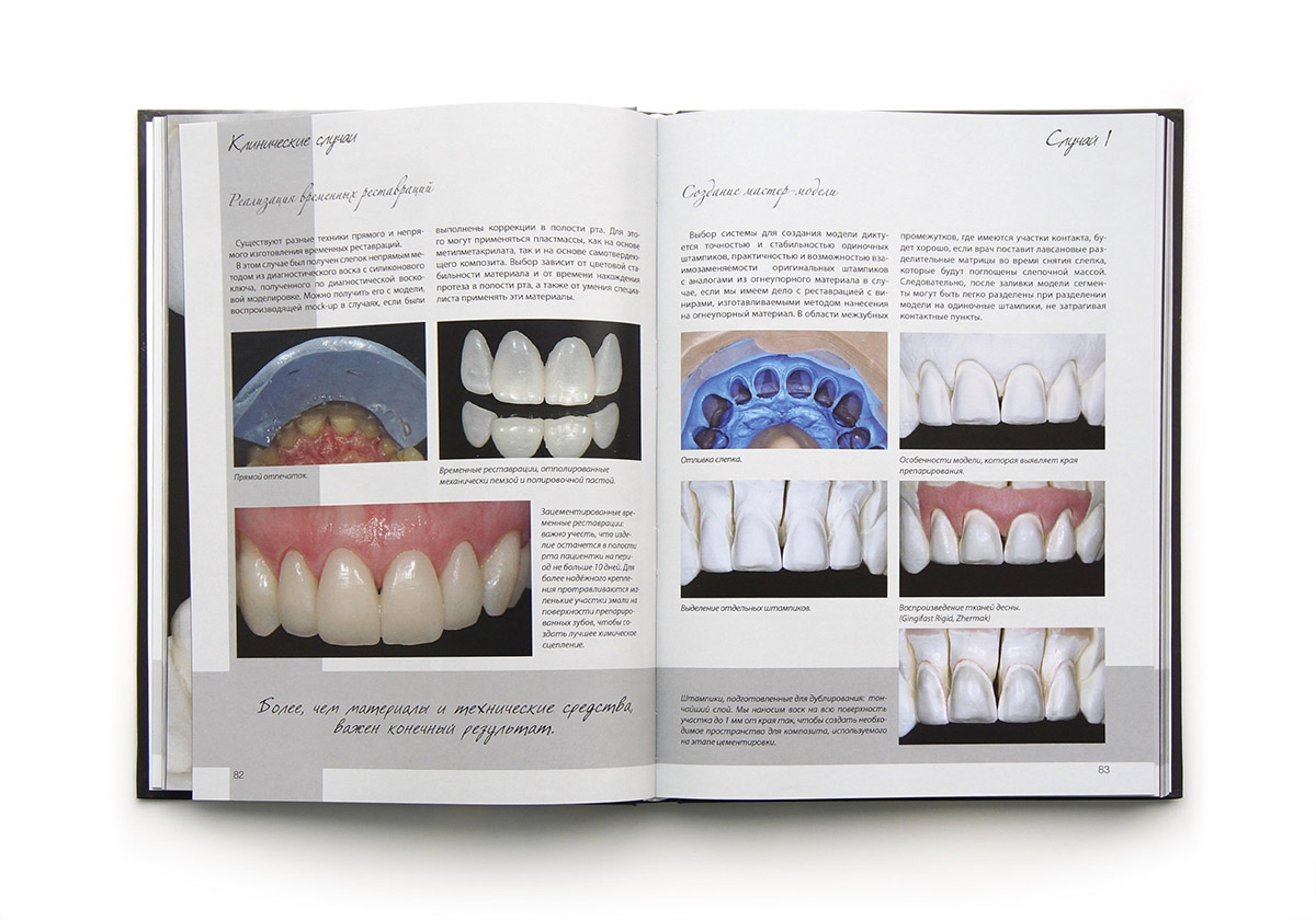 Данное руководство будет полезно для клиници­стов и зубных техников, которые стремятся к дости­жению высокого эстетического результата, а также к тонкому психологическому контакту с пациентом. Без­условным достоинством издания можно считать опи­сание практической работы с конкретными людьми. Объективный анализ каждого клинического случая сопровождается великолепными фотоиллюстрация­ми, которые помогут даже начинающему специалисту легко освоить представленный материал.