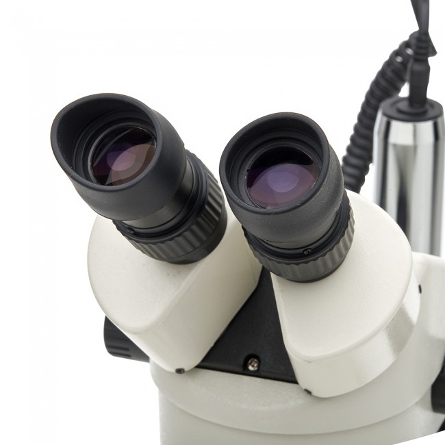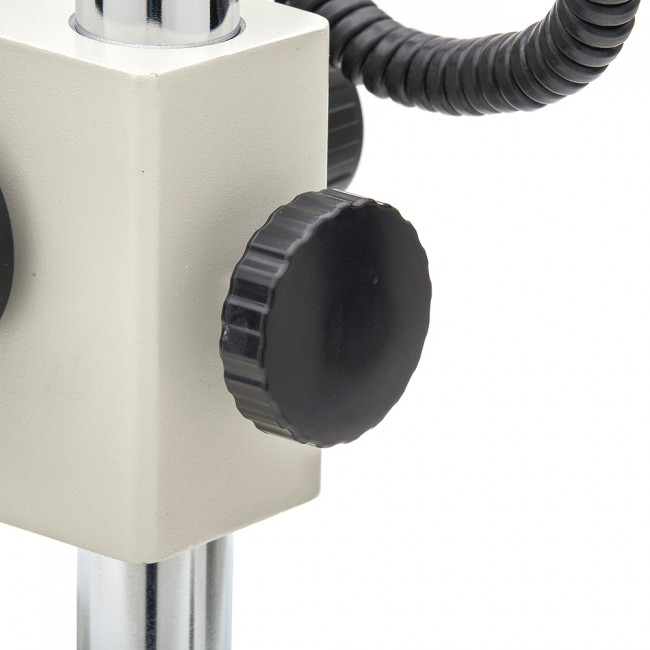 - Микроскоп отличается увеличенным рабочим расстоянием до 40 см от объектива до наблюдаемого объекта. Это облегчает манипуляцию с крупными образцами.
