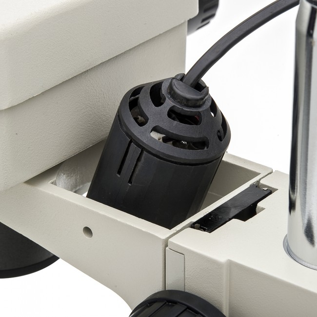 - Осветитель с галогеновой или вольфрамовой лампой 12 В, 10 Вт, и встроенным в основание микроскопа блоком питания.