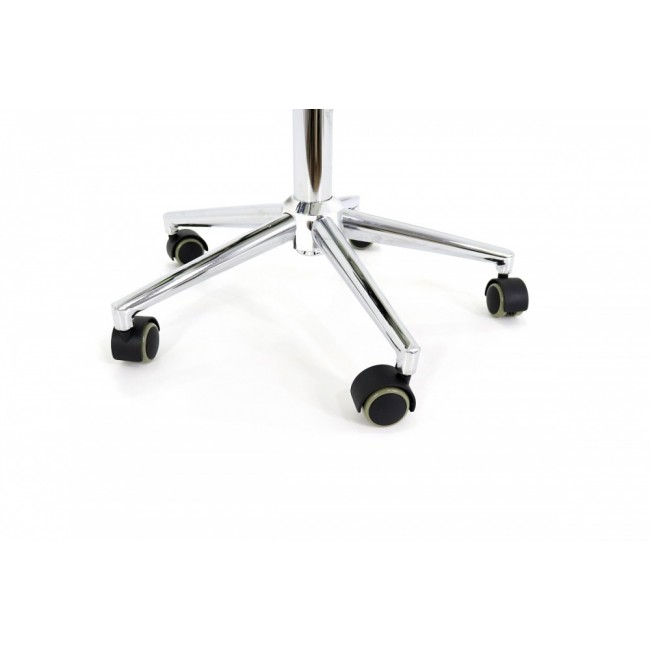 Высоту стула можно легко регулировать при помощи простого механизма. Стул установлен на пятилучье, которое делает всю конструкцию устойчивой и надежной. Небольшие колесики позволят передвигать его туда, куда вам необходимо, и при этом не царапают пол, обеспечивая мягкое и плавное движение.