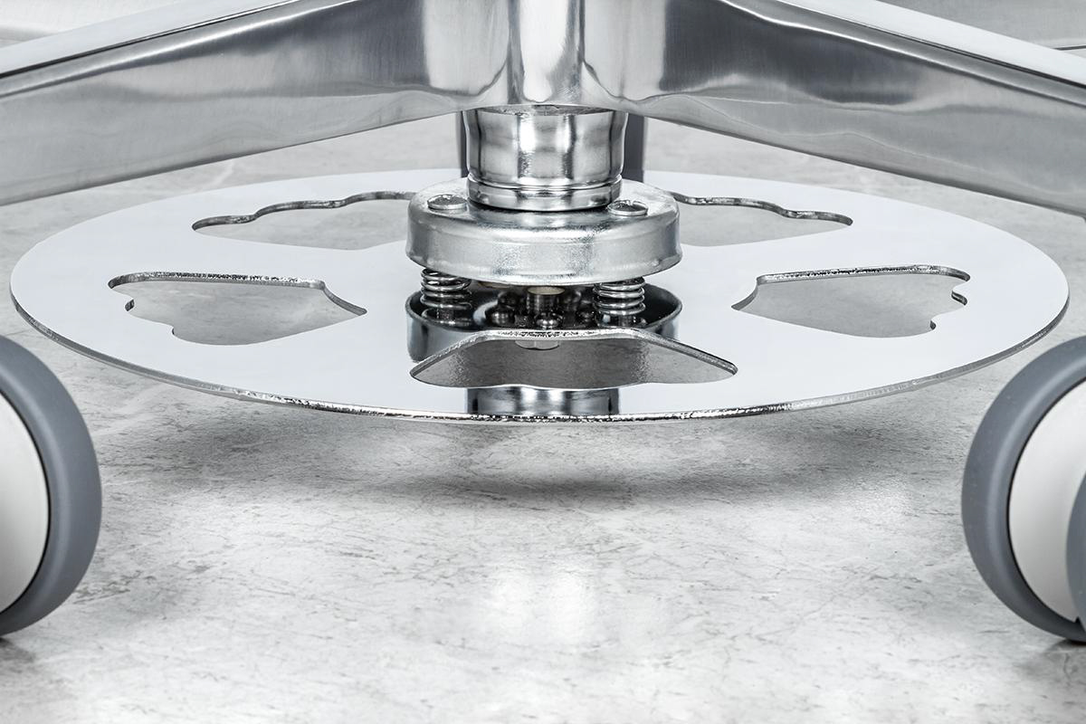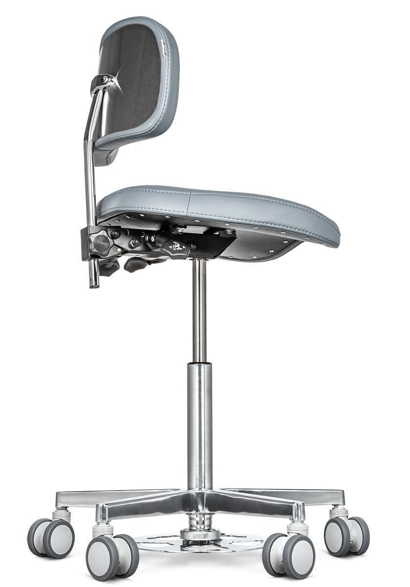 Стул ассистента MERCURY B оснащён возможностью настраивать его положение в зависимости от индивидуальных особенностей человека. В первую очередь это касается спинки, которая может отклоняться на довольно большой угол. Также есть возможность регулировать высоту кресла по вертикали, в следствие чего стул подойдёт для людей разного роста. Соединительные детали выполнены из нержавеющей стали, а при производстве сиденья используется литьевая пенополиуретановая смесь, которая позволит ему держать форму более 5 лет