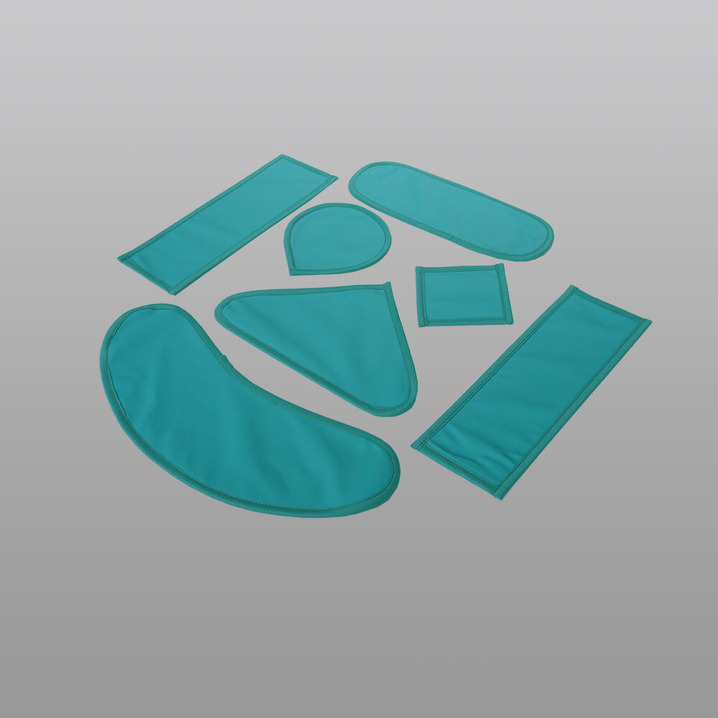 Комплект защитных пластин состоит из 7 элементов различного размера и формы, предназначен для защиты отдельных органов пациента при рентгенологических исследованиях.
