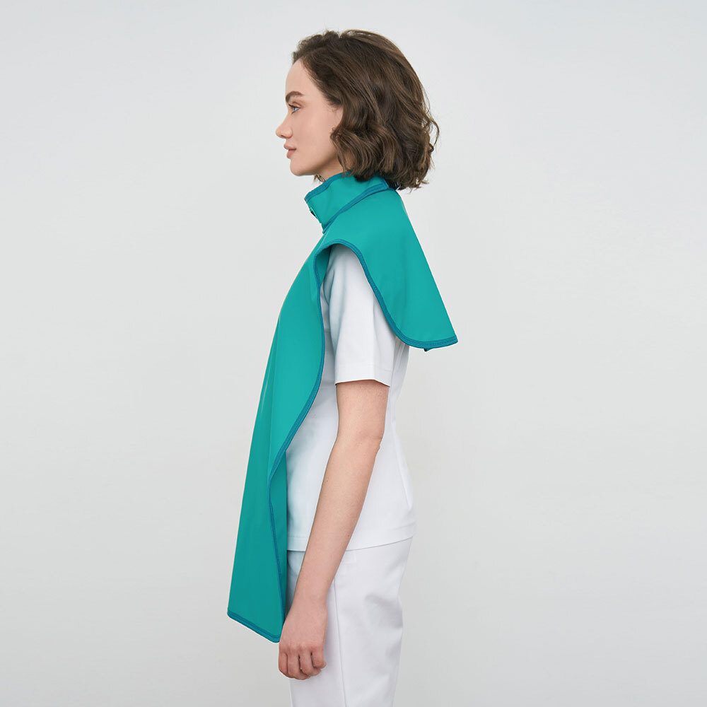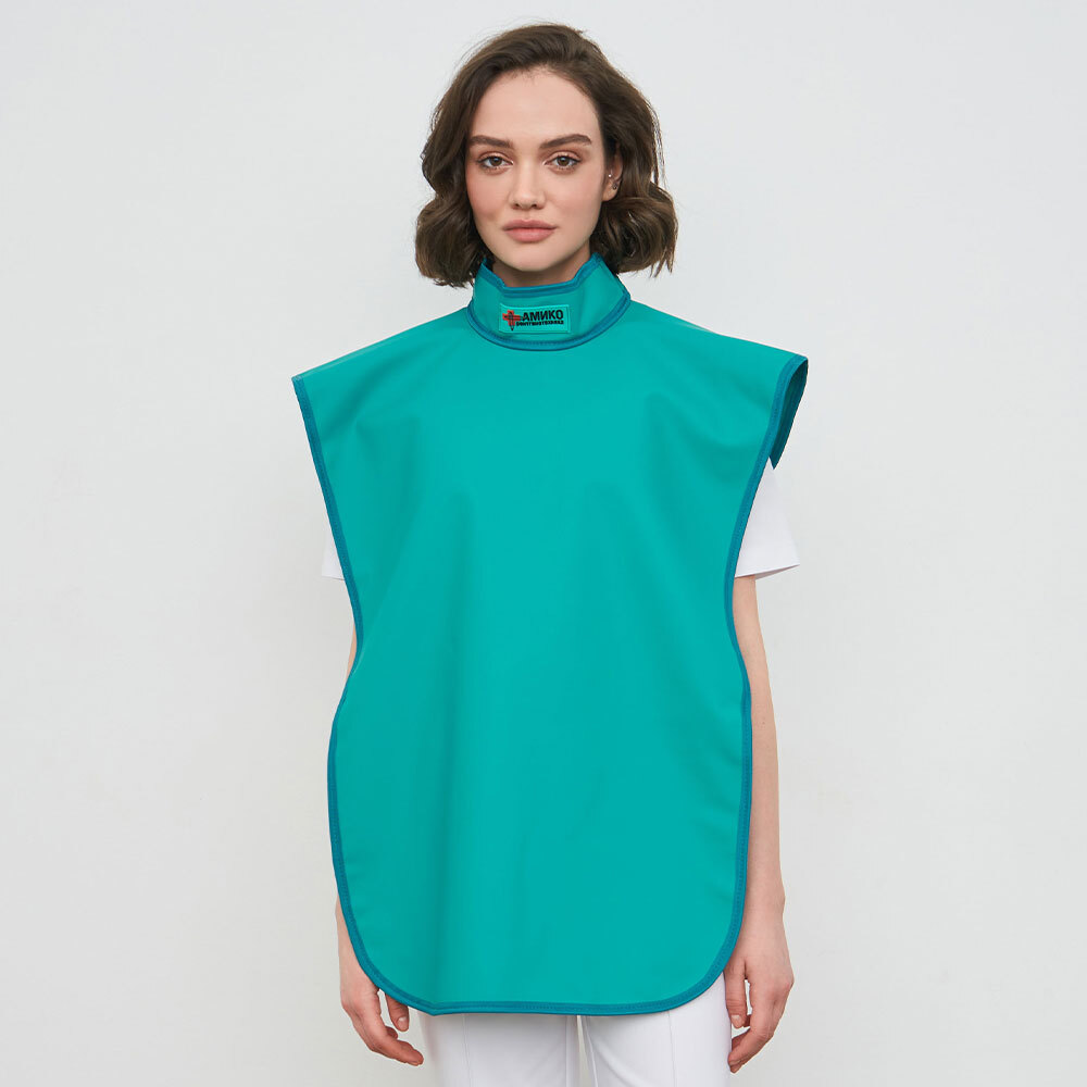 Фартук предназначен для защиты щитовидной железы и внутренних органов пациента в районе плечевого пояса и верхней части грудной клетки при черепных и стоматологических исследованиях. Для стоматологических исследований пациента применяется так же стоматологический фартук для ортопантомографа с воротником. Для стоматологов же специально разработана модель фартука с воротником-стойкой.