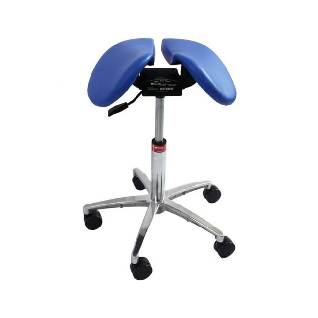 На стуле-седле человек не сидит полностью, а занимаем промежуточное положение между стоячим и сидячим. При этом угол между бедром и позвоночником получается около 135 градусов, а ноги расставлены в стороны. Это поза наездника, самая естественная для человека среди всех сидячих поз.