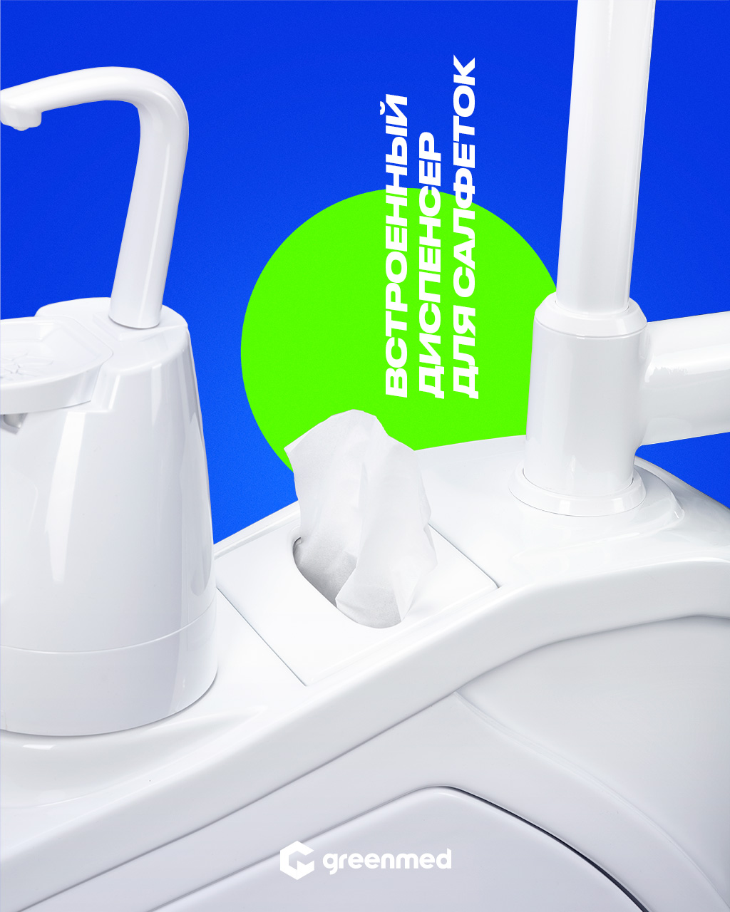 Встроенный диспенсер для салфеток, удобный и аккуратный, позволяет быстро и легко вынимать салфетки, поддерживать порядок во время и после процедуры.