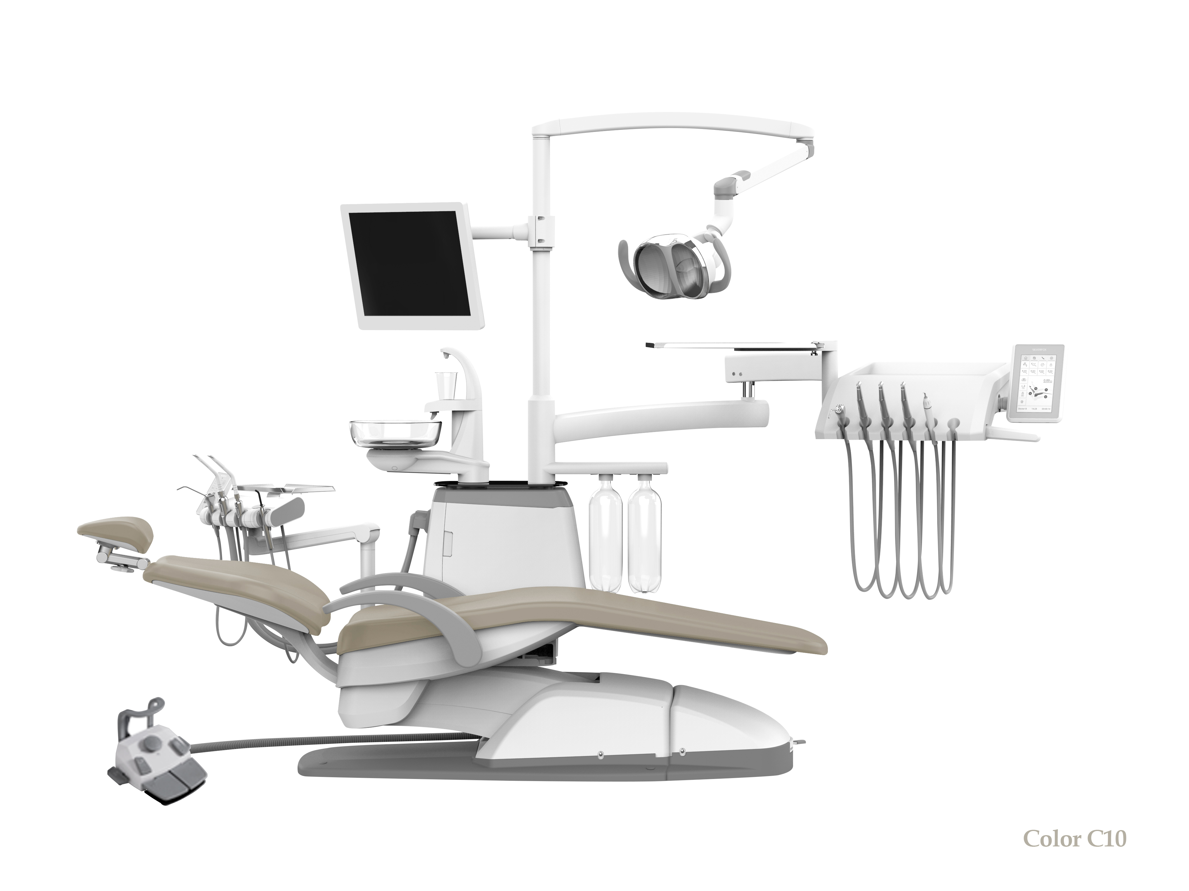 - Управление светильником осуществляется с помощью сенсорной панели на блоке врача, блоке ассистента и педали ножного управления