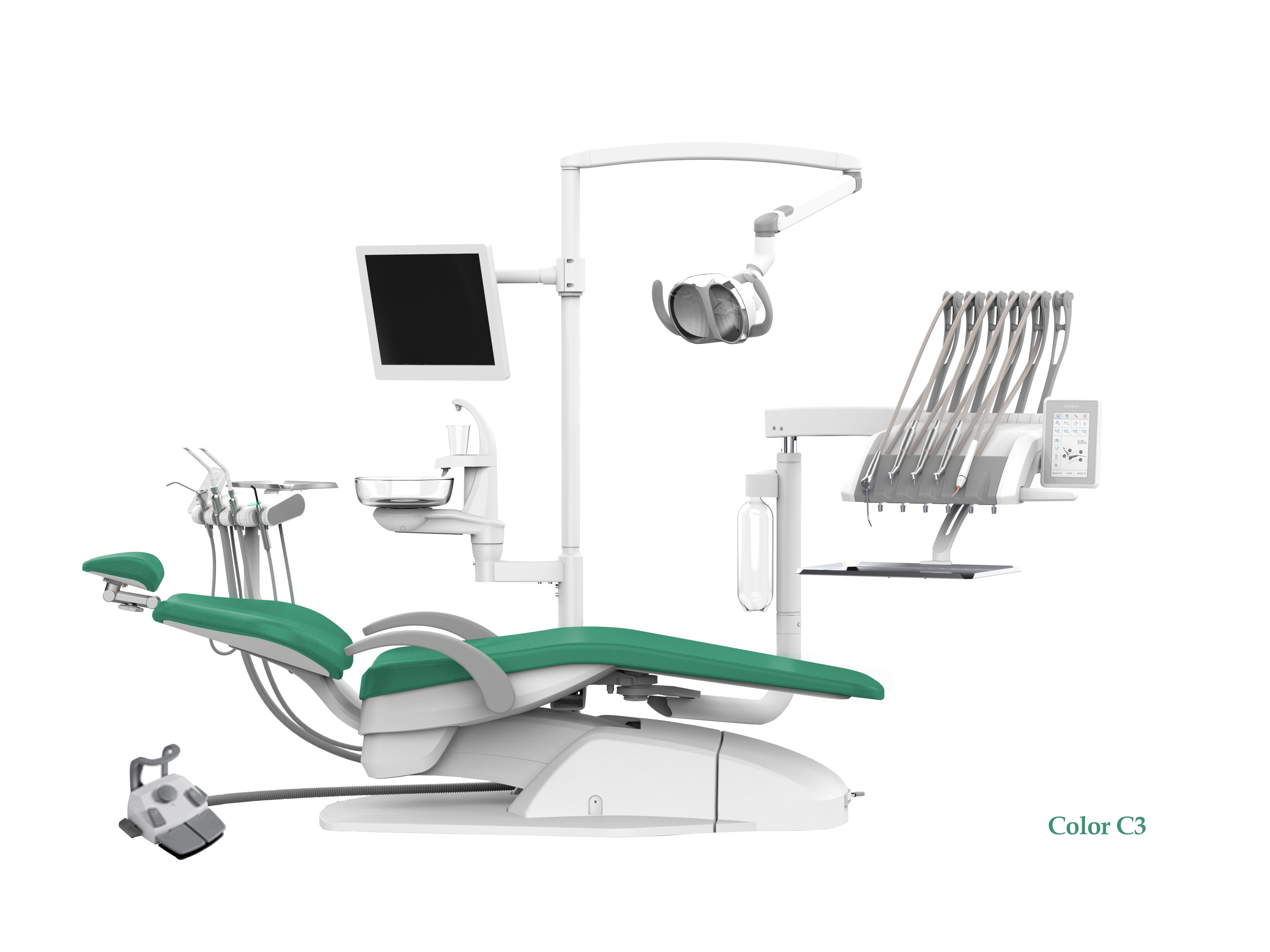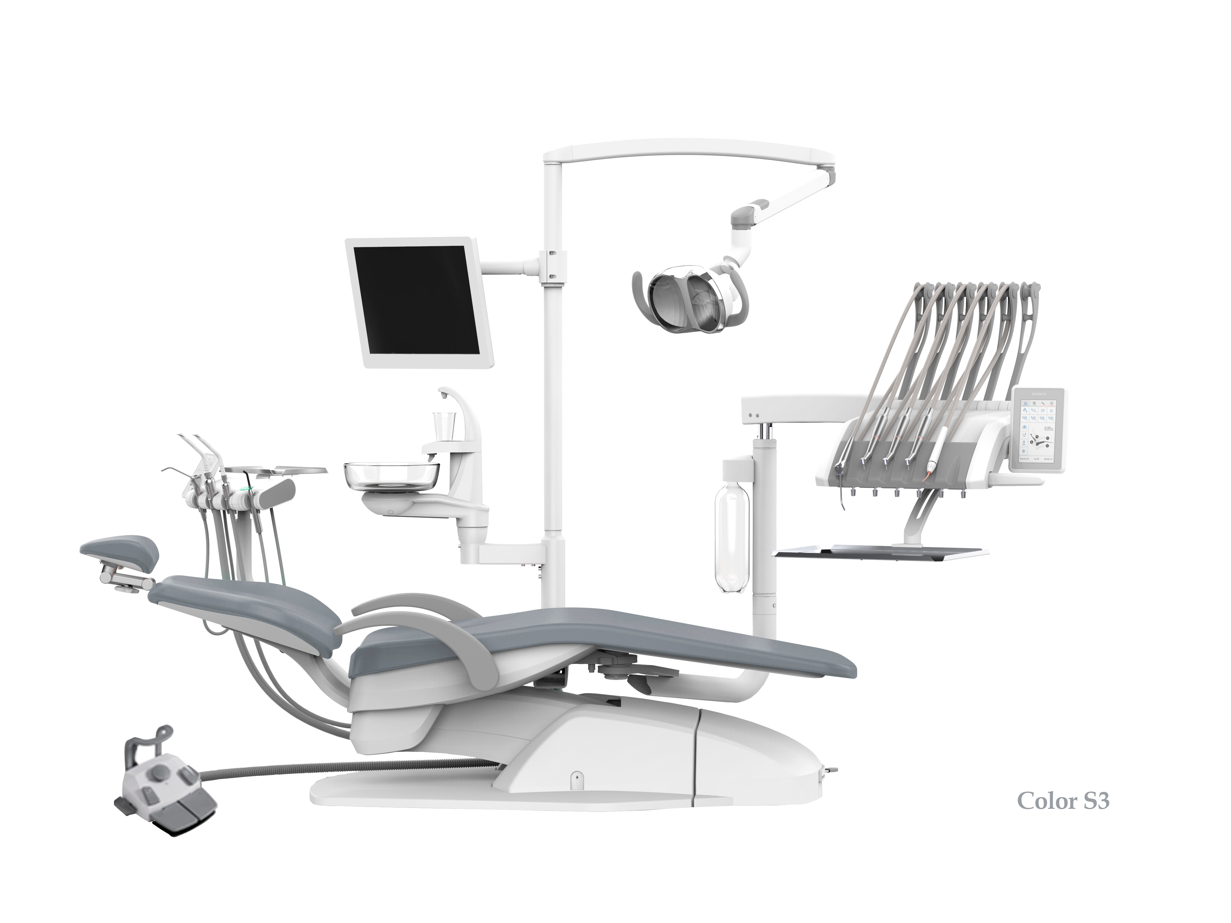 SILVERFOX 8000C-CRS0 Compact – Стоматологическая установка с верхней подачей, без гидроблока и с мягкой обивкой