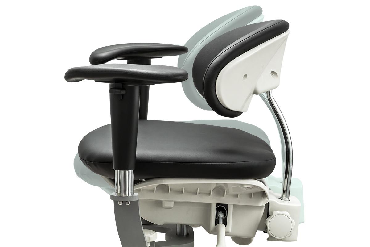 - Подлокотники двигаются по кругу, вверх/вниз, в стороны, также имеют систему скольжения вперед/назад