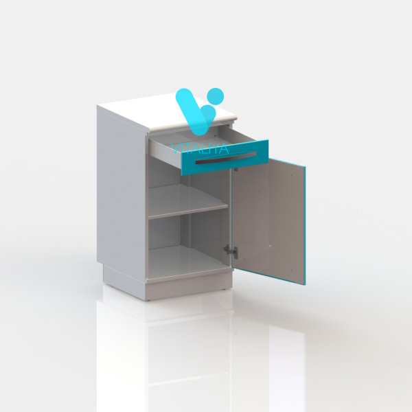 Тумба медицинская Т1 на подиуме с ящиком ЛЮКС, одностворчатая металлическая цельносварная