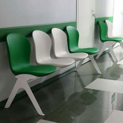 Скамья четырехместная с пластиковыми сидениями.