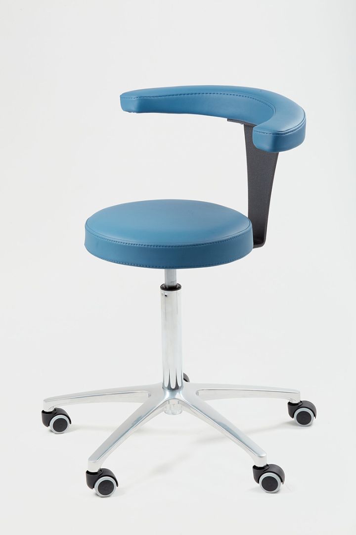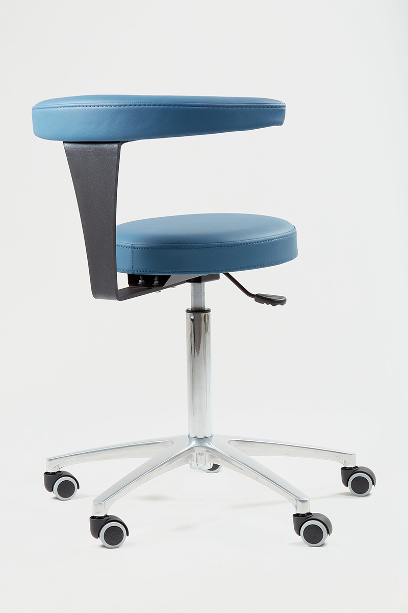 Стул Бумеранг разработан для ассистентов врачей в медицинских учреждениях. Эта модель сочетает в себе функциональность и комфорт, имеет вращающуюся конструкцию и комфортное сиденье. Абдоминальный упор служит поддержкой спине и локтям.