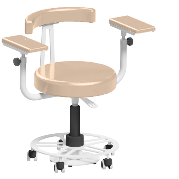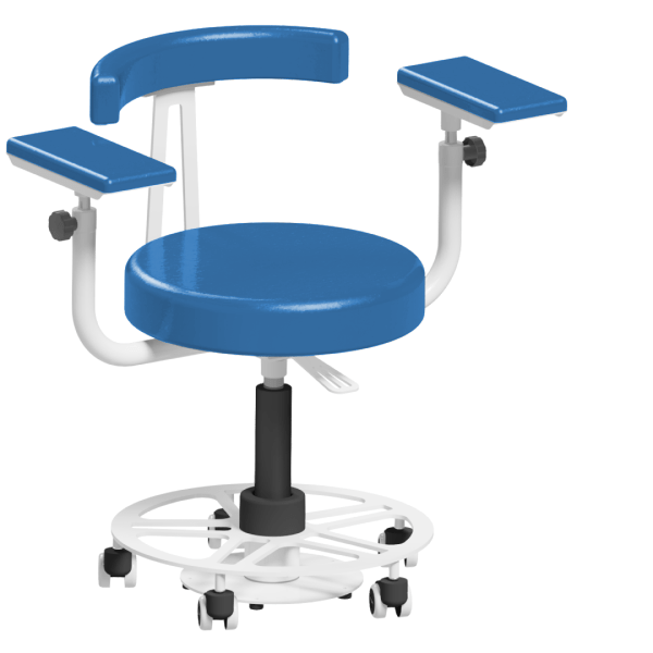Стул с подлокотниками оперирующего хирурга С-2-09 предназначен для комфортной работы хирурга, врача офтальмолога в течение нескольких часов.