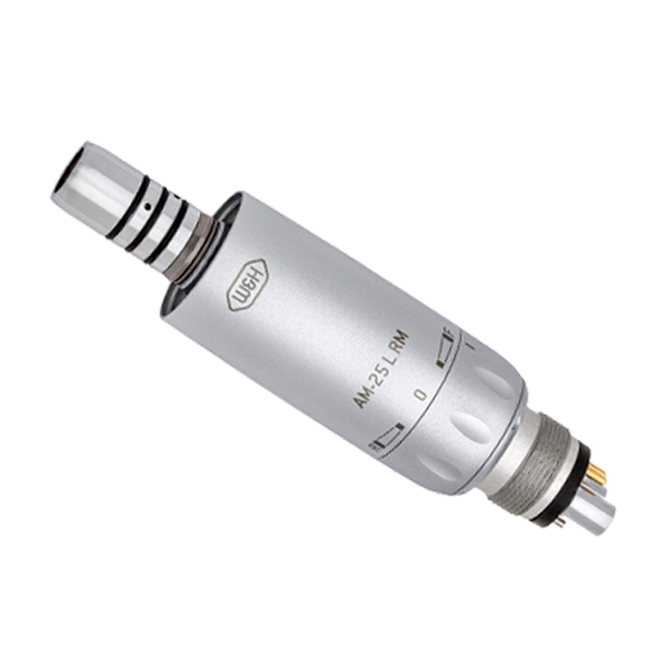 Стоматологические воздушные моторы AM-25 L RM. Мотор допускает стерилизацию в автоклаве при температуре до 135°С. Пневматический мотор с оптикой Led, с внутренней подачей охлаждения на шланг Midwest 6.