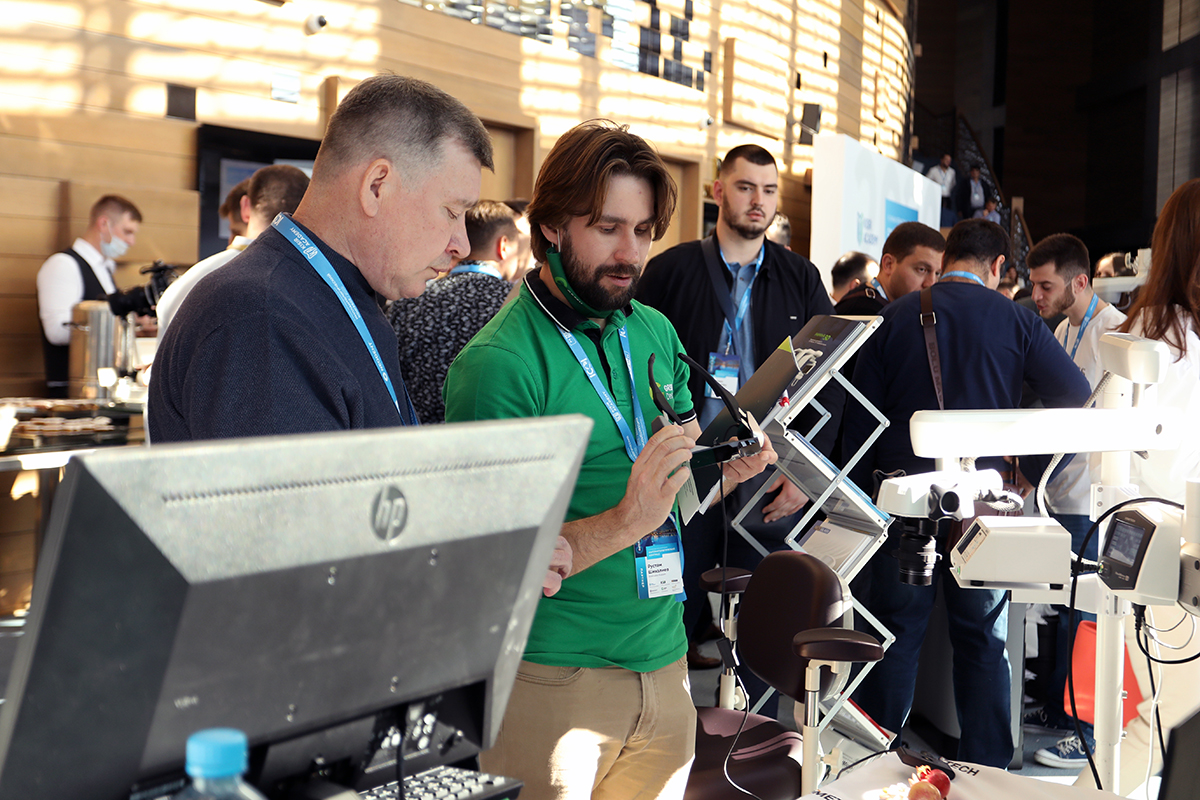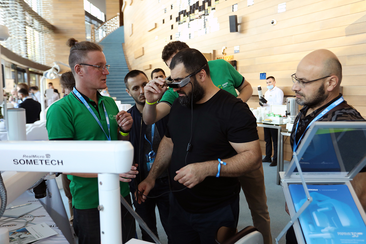 Помимо лекций от лучших специалистов в своей области, любой участник смог изучить исследования, получаемые при помощи томографа Genoray Papaya 3D 4 в 1, попробовать поработать в очках дополненной реальности на видеомикроскопе Sometech RealMicro Voms-101D, а также оценить высокое качество и удобство стоматологической установки Miglionico NiceTouch.