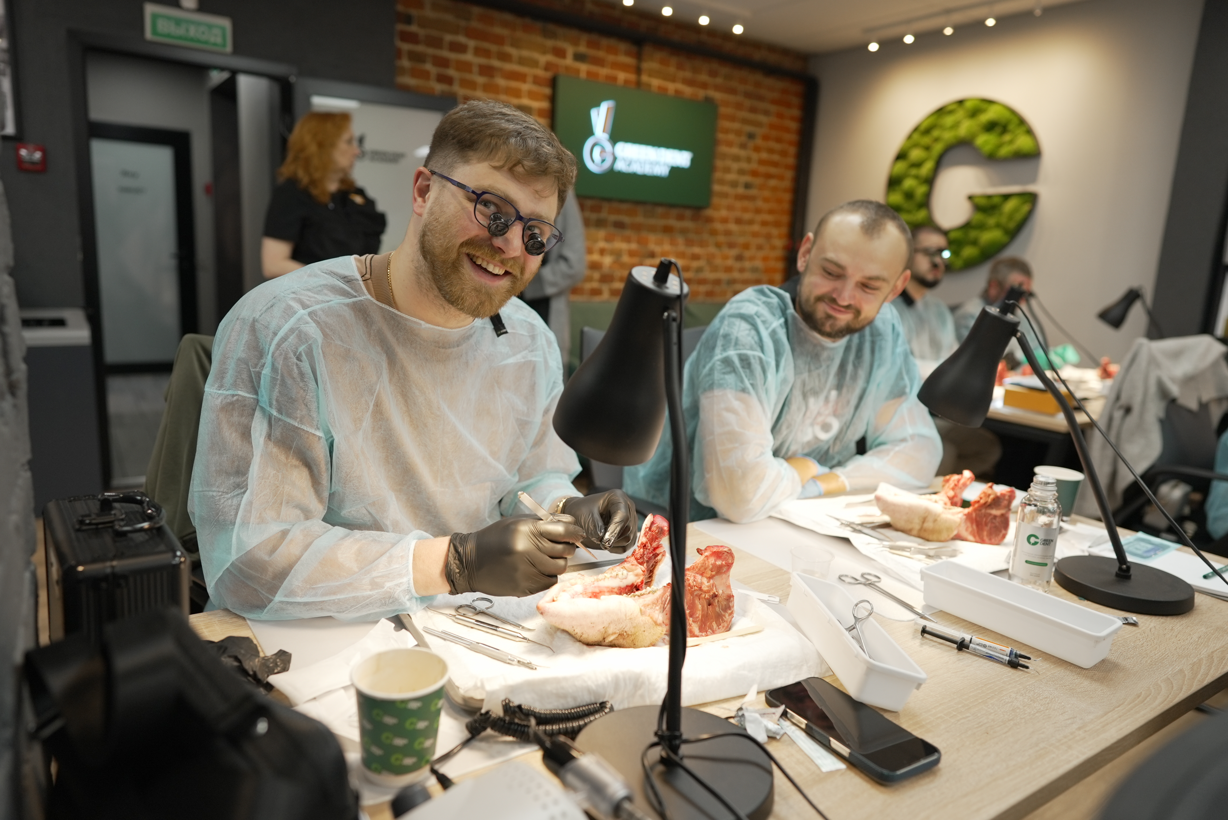 Именно это сделали участники курса Артавазда Зограбяна с рецессией десны, отработав каждый этап операции на практике в учебном центре Green Dent Academy.