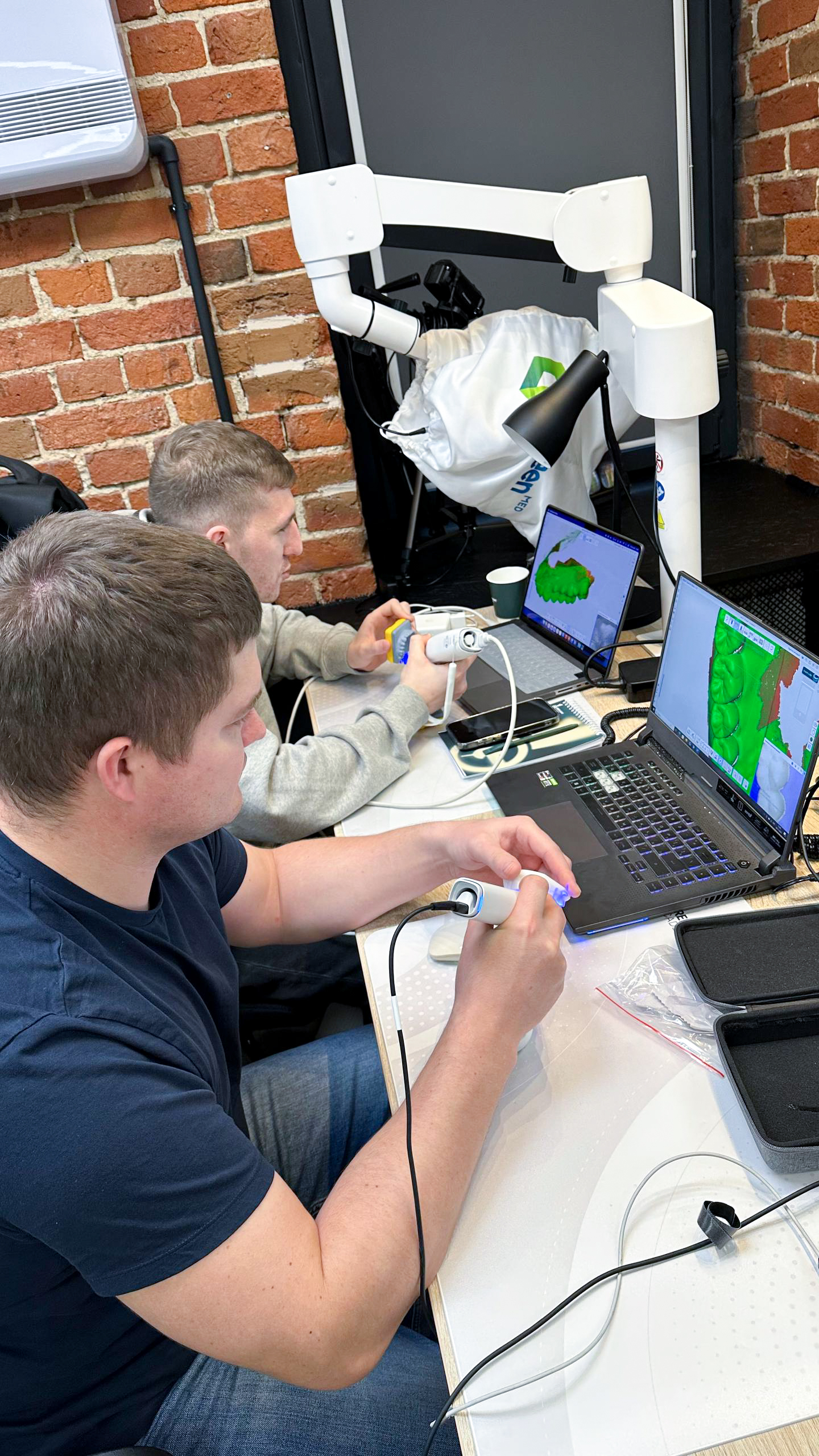 А в конце лекции каждый из стоматологов стал оператором и под чутким руководством эксперта отсканировал своего коллегу, отработав полученные навыки на практике