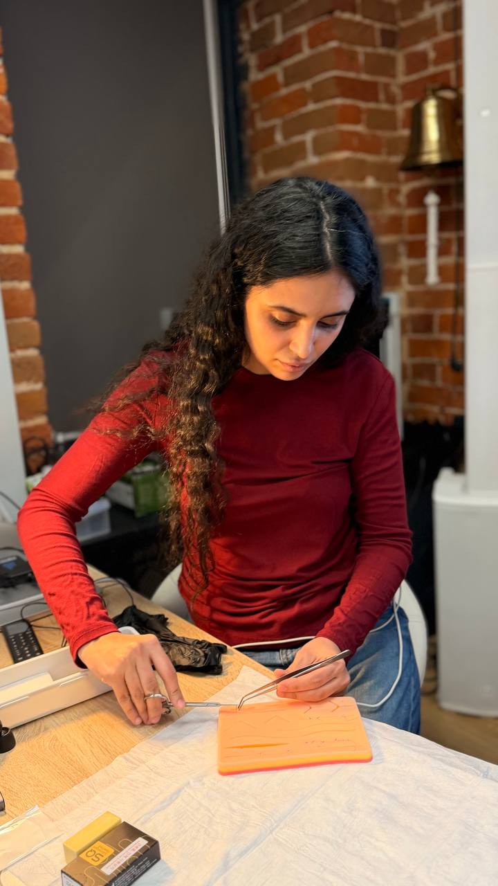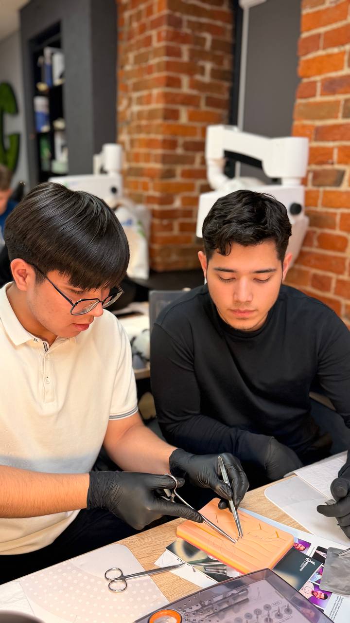 Курс включал в себя насыщенную теорию и практику с отработкой навыков установки имплантатов на моделях и соблюдением параллельности. Будущие стоматологи также научились выполнять забор мягкотканого трансплантата, фиксацию к лоскуту и наложение швов.